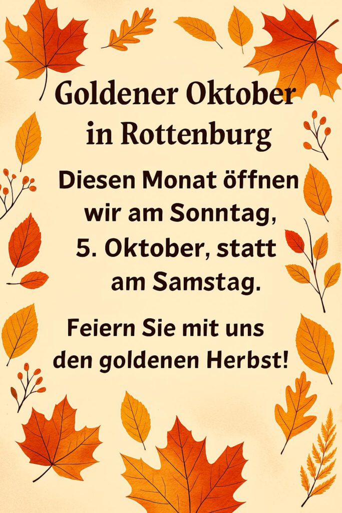 Am Samstag, 04.10.25 bleibt das KARO geschlossen, da am Sonntag, 05.10.25 in Rottenburg Goldener Oktober ist und die Läden von 12 Uhr bis 17 Uhr geöffnet haben. Wir freuen uns auf Ihren Besuch am Sonntag. Ihr KARO-Team